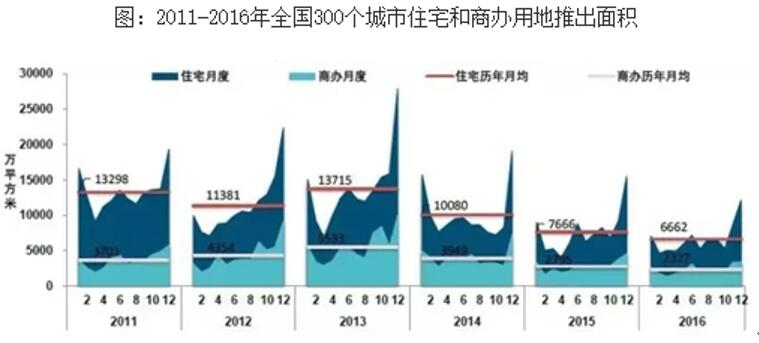 1、全國各類土地供需量仍保持低位。在全國去庫存政策的指導(dǎo)下,地方政府繼續(xù)減少土地推出量,2016年全國300個城市共推出各類用地18.2億平方米,同比下降11.0%,降幅較2015年收窄7.8個百分點(diǎn),整體仍處于較低水平。