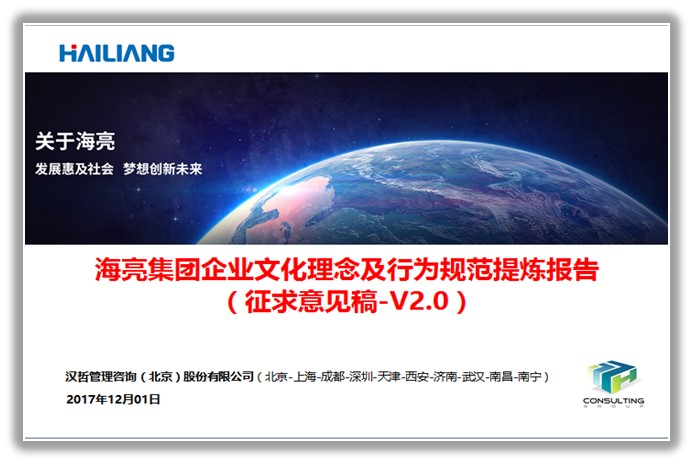 為了確保本項(xiàng)目達(dá)到新時(shí)期中國企業(yè)管理綱領(lǐng)性咨詢的新高度,漢哲咨詢集團(tuán)調(diào)集了近十位咨詢專家參與本項(xiàng)目,開展了數(shù)千份問卷、近五百份文件的研究,以及面向國內(nèi)外近二十家企業(yè)集團(tuán)(包括豐田、惠普、和記黃埔、復(fù)興、萬象、比亞迪、吉利、新希望等)的綜合性研究。作為中國企業(yè)管理綱領(lǐng)類知名咨詢作品《東風(fēng)日產(chǎn)行動(dòng)綱領(lǐng)》的起草人,漢哲咨詢首席專家段磊博士親自參與了本方案的討論和修訂工作,相信《海亮之道》將成為新時(shí)期大型綜合企業(yè)集團(tuán)戰(zhàn)略與文化轉(zhuǎn)型的標(biāo)志性作品。