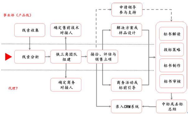 針對個細(xì)分模塊,建立基于市場的流程運行邏輯,如單一項目線索跟進(jìn)與成交的業(yè)務(wù)運作邏輯如下: