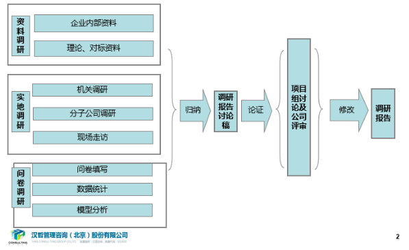 對公司機關(guān)和各分子公司進行深入調(diào)研。共計深入專訪102人次,開展員工座談會3場,形成訪談紀要20余萬字;進行多次車間現(xiàn)場走訪;開展問卷調(diào)查,收集3143份樣本;針對各業(yè)務(wù)與職能條線開展專項問題調(diào)研;對國內(nèi)外行業(yè)標桿企業(yè)進行深度研究;對內(nèi)外部相關(guān)資料進行嚴謹分析。
