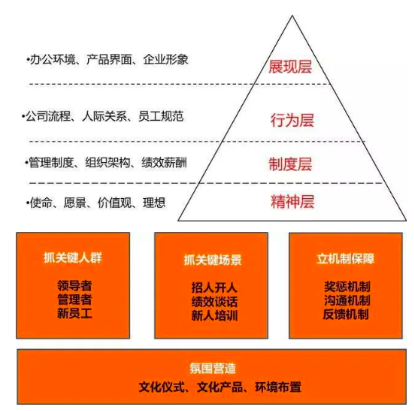 主要的方式有:場景化:文化要落地在公司每一個員工能看到、能感知到場合,比如洗手間、食堂,見縫插針的植入公司文化性和知識性內(nèi)容,功夫在細(xì)節(jié)??梢暬喊殉橄蟮钠髽I(yè)文化和價值觀,用漫畫、涂鴉等多種形式呈現(xiàn)出來,關(guān)鍵要用員工更易理解和傳播的方式加工提煉。可量化:阿里的價值觀能落地,不僅僅是阿里有合適的土壤,而在于有可操作的考評工具,采用行為+案例+季度review,每一個價值觀的表現(xiàn)評價都是明確的。儀式化:阿里日、年會等節(jié)日,公司從上到下大張旗鼓,氛圍打造是HR從業(yè)者的基本功,從雪中送炭到錦上添花都不能脫節(jié)。去總化:公司高層能夠俯下身來,像馬云經(jīng)常在內(nèi)網(wǎng)跟員工回帖,首先要求HR不要刻意去給公司領(lǐng)導(dǎo)造神,學(xué)會用互聯(lián)網(wǎng)思維去影響管理者低下身來。