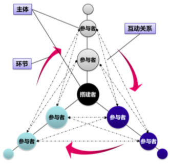 如果把平臺(tái)進(jìn)行解剖,拆解其內(nèi)在構(gòu)造,那么可以看到,平臺(tái)由平臺(tái)主體、互動(dòng)關(guān)系、環(huán)節(jié)三個(gè)要素構(gòu)成。