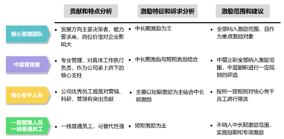 股權(quán)激勵應傾向于公司具有戰(zhàn)略價值的核心人才,擁有關(guān)鍵技術(shù)或關(guān)鍵資源或支撐公司運營核心環(huán)節(jié)或掌握核心業(yè)務的員工。公司在激勵對象選擇時建立篩選規(guī)則,本著寧缺毋濫的原則,對少數(shù)重點核心人才進行激勵。