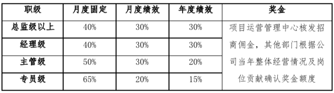 統(tǒng)一年薪模式與崗位績效工資模式的工資結(jié)構(gòu),約定不同職級的薪酬固定浮動比例,優(yōu)化福利項目及所占比例,改善固定薪資過高的問題。
