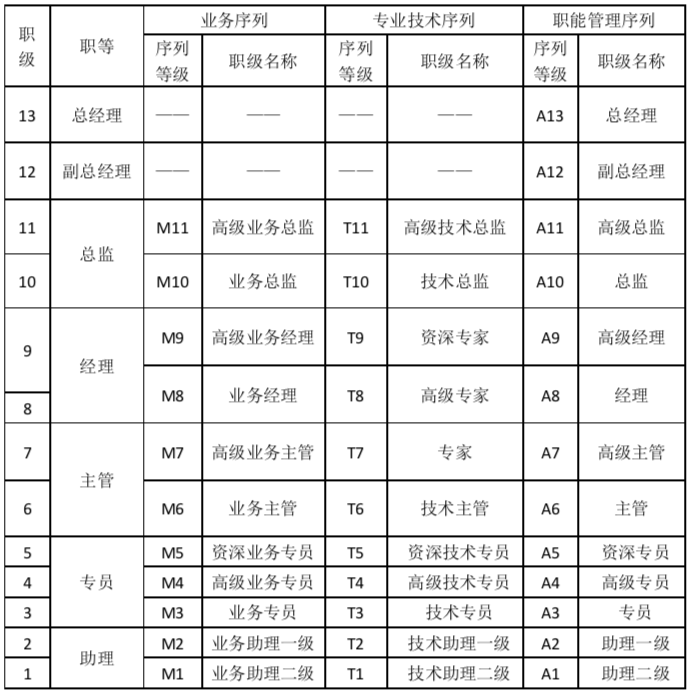 根據(jù)公司管理需要,結(jié)合公司現(xiàn)階段發(fā)展特點、行業(yè)特點,以及未來人力資源管理進(jìn)一步要求,規(guī)劃職級體系和晉升通道,并明確職級評定、調(diào)整規(guī)則,為員工提供成長空間和職業(yè)發(fā)展指導(dǎo)。