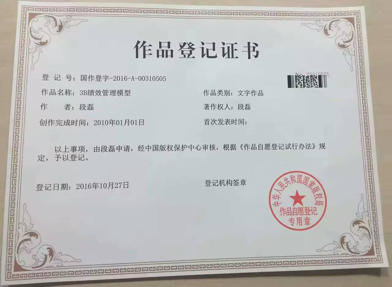 近日,漢哲管理咨詢(xún)公司《3B績(jī)效管理模型》正式獲得中華人民共和國(guó)著作權(quán)證書(shū)。