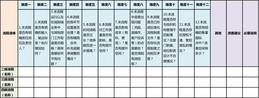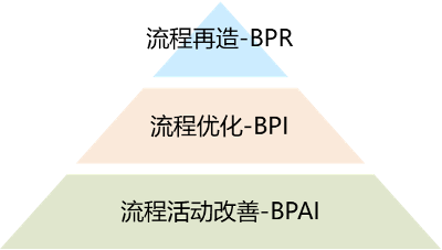 1、流程優(yōu)化層級,根據(jù)流程改進(jìn)的程度分為三個層級: