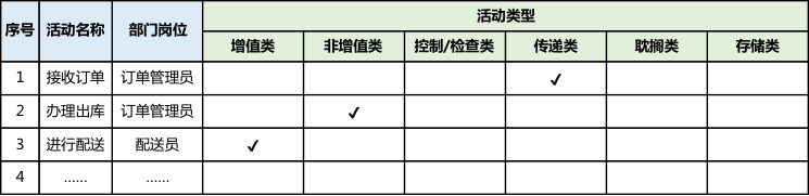 ② 非增值活動,對業(yè)務(wù)沒有起到關(guān)鍵作用的活動,可分為必須存在的活動和可以刪除的活動;