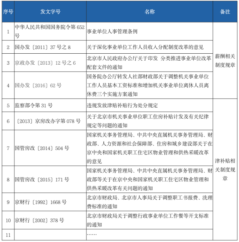 2. 目前國家、北京市對于事業(yè)單位薪酬及津補(bǔ)貼政策如下;