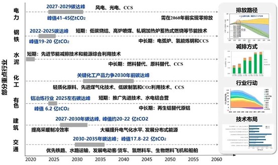 實(shí)現(xiàn)中國(guó)2030年前碳達(dá)峰、2060年碳中和的時(shí)間表和路線圖: