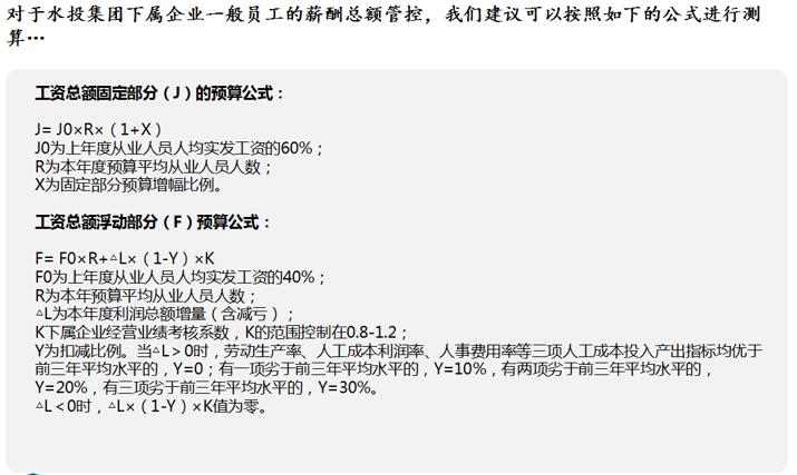 3、制定子公司一般員工薪酬總額管理辦法。根據(jù)子公司的企業(yè)規(guī)模、經(jīng)營(yíng)業(yè)績(jī)情況、同行業(yè)市場(chǎng)薪酬水平等因素合理確定一般員工的薪酬總額,既能確保子公司薪酬總額總體可控,又能激勵(lì)各子公司創(chuàng)造良好的經(jīng)濟(jì)效益。