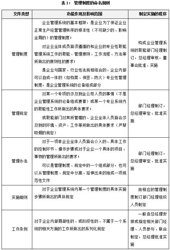 制度命名的標準格式為:企業(yè)名稱+管理事項+分類名稱