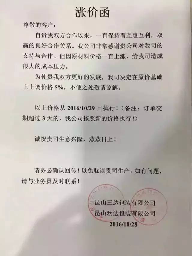 恭喜之前已發(fā)貨的客戶,您的貨現(xiàn)在已經(jīng)升值了!看這個趨勢,原料還會繼續(xù)上漲,漲價潮真的開始了:親愛的客戶,別說你不知道 !