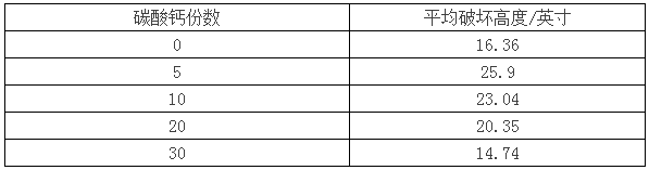 1.通過上述實驗得知完全塑化的PVC的性能并不是最好的,而是在少量添加不塑化的碳酸鈣的材料落錘沖擊性能最好,隨著塑化度繼續(xù)下降,落錘沖擊性能也隨之下降,填充量達到20份以上時,落錘沖擊性能下降的更快。