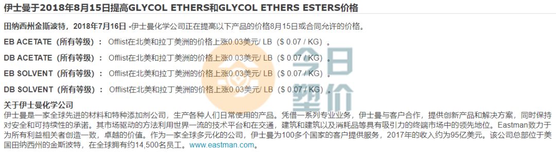 2018年7月17日,全球特種材料公司塞拉尼斯公司宣布將提高醋酸上市和售后價(jià)格。