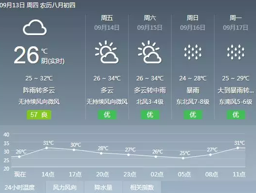 預(yù)計(jì)東莞市13日多云,有陣雨,并伴有5到6級(jí)陣風(fēng);