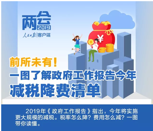十三屆全國(guó)人大二次會(huì)議5日上午9時(shí)在人民大會(huì)堂開(kāi)幕,李克強(qiáng)總理在《政府工作報(bào)告》中,多次提到“稅”字,我們摘錄了2019年政府工作任務(wù)中的主要涉稅內(nèi)容: